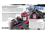 The standard high torque and high efficiency 300MX 3700KV/2216 brushless motor not only contributes to dramatic power increase, the high efficiency cooling system enables cooler operating temperature during and after flights when compared to motor of previous generation. Allow to provide consistent power output and keep stable RPM in non-stop 3D flying presenting perfect performance. Also it pairs with digital HV DS450 and DS455 servos, supporting 8.4V output, fast response and high torque. The new 25A brushless speed governor support 5~8.4V adjustable BEC voltage.