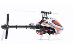 The carbon fibre main frame takes rigidity to another level for a rock-solid flight experience. An oversized tail boom eliminates the need for boom supports and is crowned by an ABS plastic tail case improving vibration damping and performance.