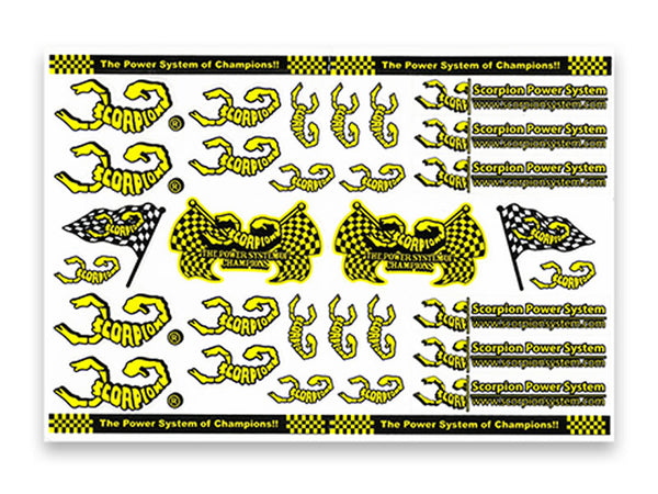 Create your unique canopy on the field! This A4-Size Scorpion sticker is a perfect match for your canopy, they are including many different size of Scorpion die cut stickers plus the text of (The Power System of Champions!!). It is made with anti-UV and Water-Proof material.